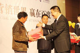 2008年11月22日,陽光絢美,鮮花競放,在這暖暖的初冬季節(jié)里,營銷世界?贏在百度——2008企業(yè)營銷峰會在鹽城市瀛州賓館拉開了帷幕。此次會議規(guī)??涨笆⒋?,400多名企業(yè)家朋友齊聚一堂,我們還有幸邀請了鹽都?亭湖分局局長王林釗及26個鄉(xiāng)鎮(zhèn)的電信支局長擔(dān)任會議嘉賓,金牌電臺主持人楊帆先生擔(dān)任會議主持。會議開場,主持人帶領(lǐng)大家做“自我營銷”互動小游戲,娛樂之余直入會議主題。為了感謝各位企業(yè)家朋友們的光臨,本次會議特設(shè)抽獎環(huán)節(jié),第一輪抽獎環(huán)節(jié)后,企業(yè)家朋友們個個激情高漲。百度渠道部經(jīng)理晟皞先生粉墨登場,為我們帶來了精彩的主題演講。