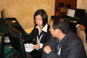 下午1:00客戶們陸續(xù)入場,我們的工作人員指導(dǎo)客戶有序簽到