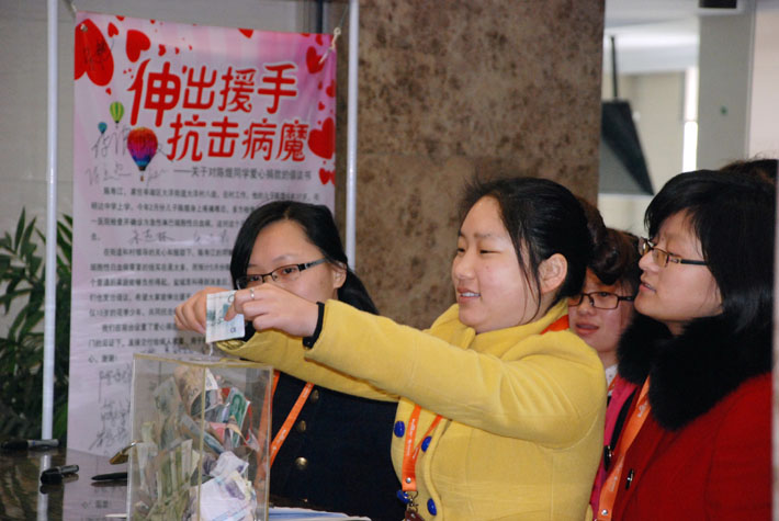 此次活動捐得的款項將在有關部門的見證下,直接交付給病人家屬,用于疾病治療。通過此次愛心捐贈活動,希望社會有愛心的人士也能夠獻出自己的愛心,讓陳煜同學能夠感受到社會大家庭的溫暖,讓我們共同祈禱與祝愿,一起傳遞希望和堅強。或許我們的愛心只是愛的江河中那小小的一滴,但我們相信大家的關心和友愛定能幫助陳煜同學和他危難的家庭戰(zhàn)勝眼前的困難!